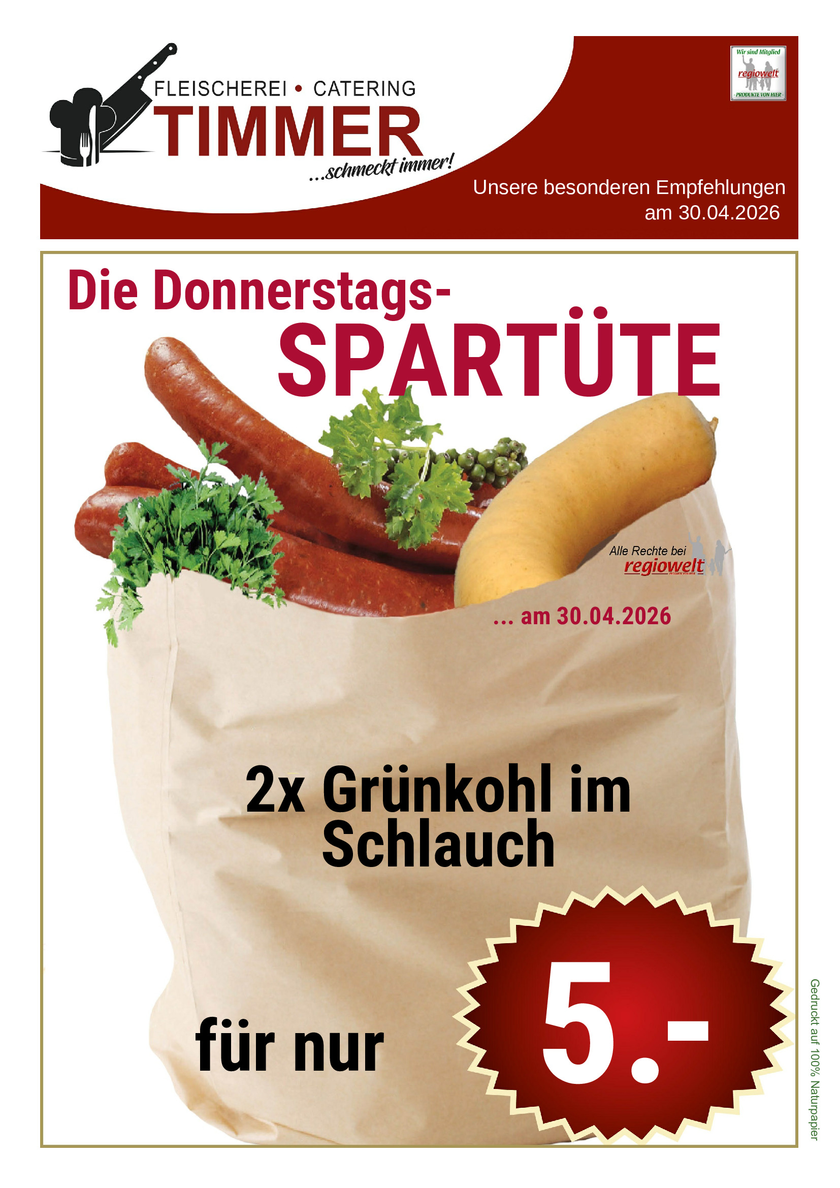 Jede Woche versorgen wir Sie mit attraktive Sonderangeboten zum Sparpreis. Die Donnerstags Spartüte besteht diese Woche aus: 2x Grünkohl im Schlauch. Zusammen für nur 5 Euro. Greifen Sie zu.