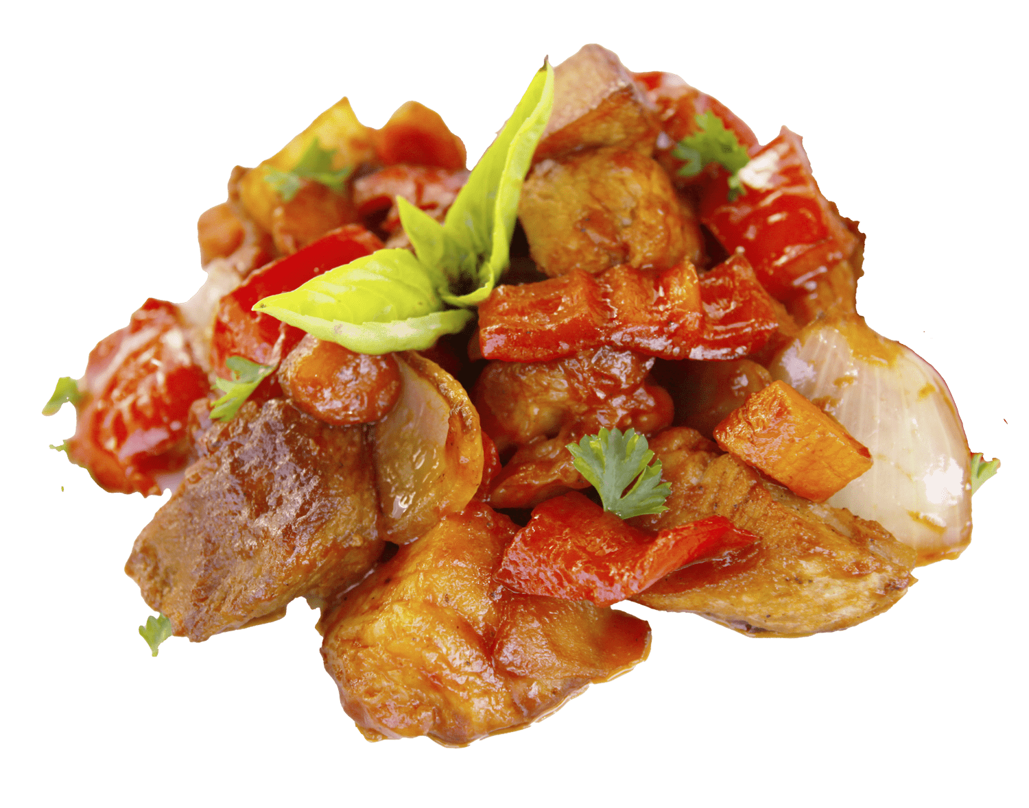 Ein herzhaftes Paprikagulasch, zubereitet mit frischer Paprika und Zwiebeln.