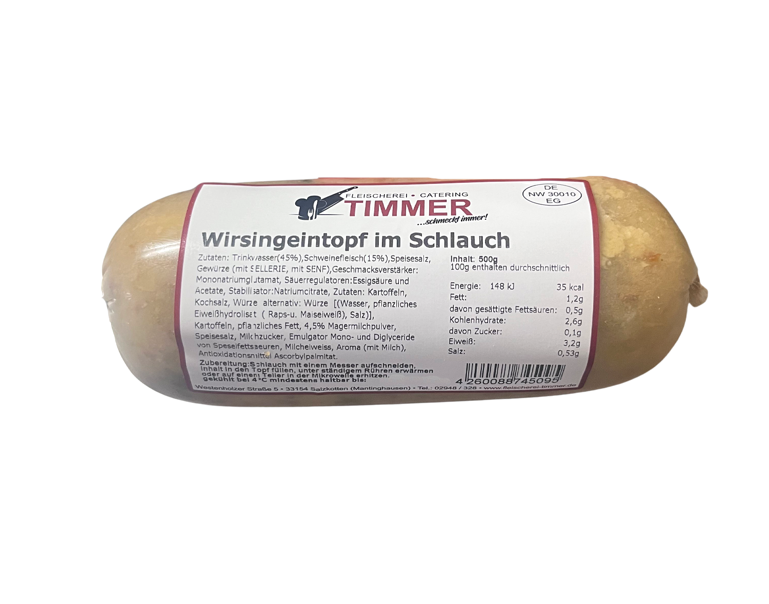 Wirsingeintopf im Schlauch – herzhafte Suppe mit Wirsing, Gemüse und Gewürzen in einem praktischen Schlauchbeutel. Ideal als schnelle Mahlzeit unterwegs oder portionsweise aufzubewahren. Einfach erwärmen und genießen.
